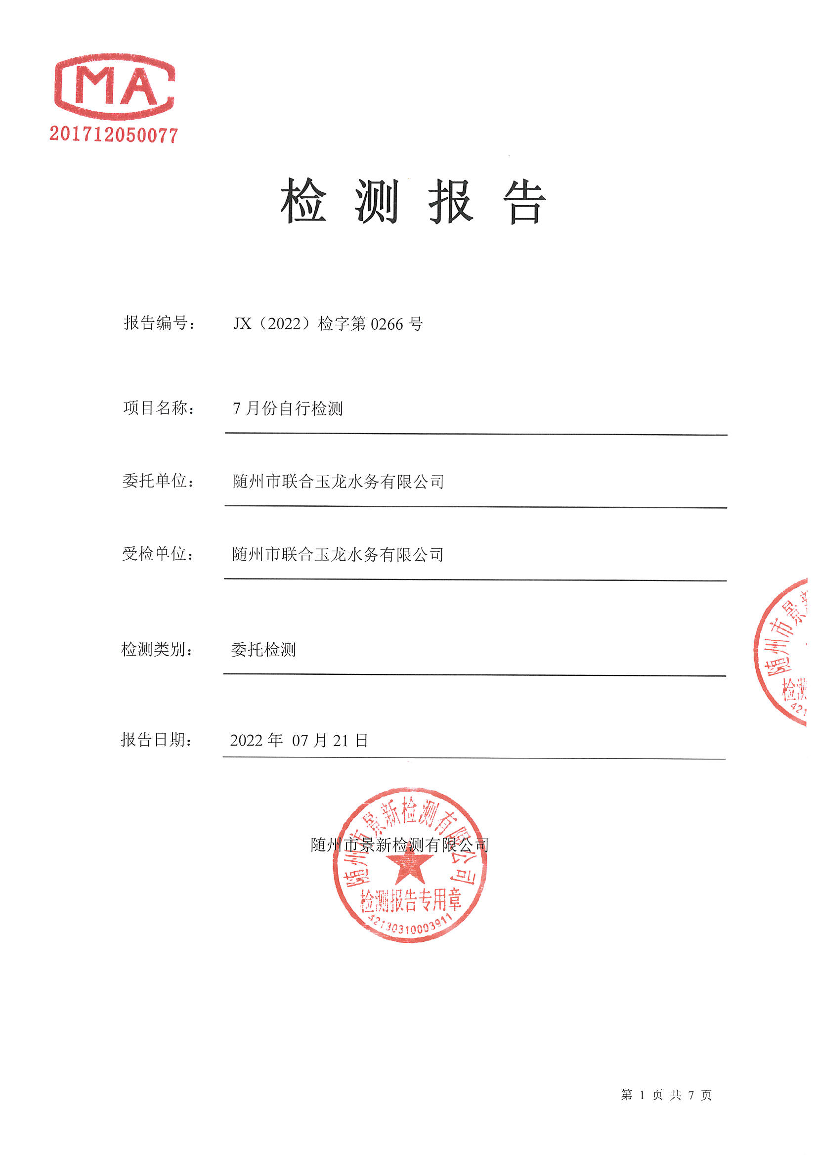 景新环保检测报告2022年7月份